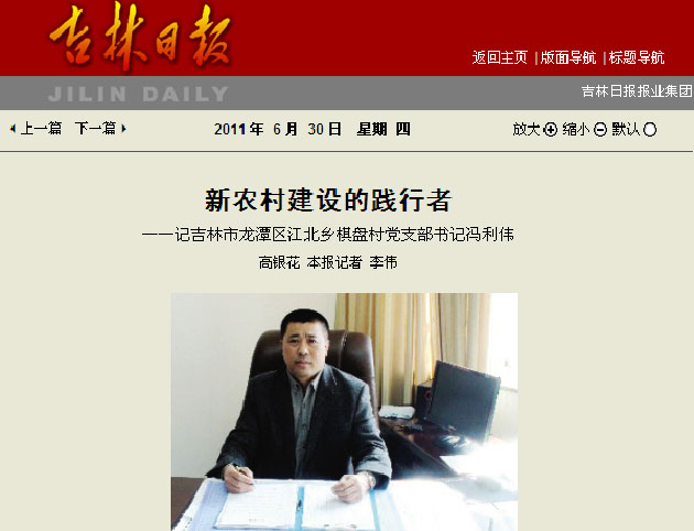 —记吉林市龙潭区棋盘村党支部书记冯利伟