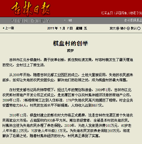 摘自吉林日报 2011 年 1 月 7 日 星期 五 |