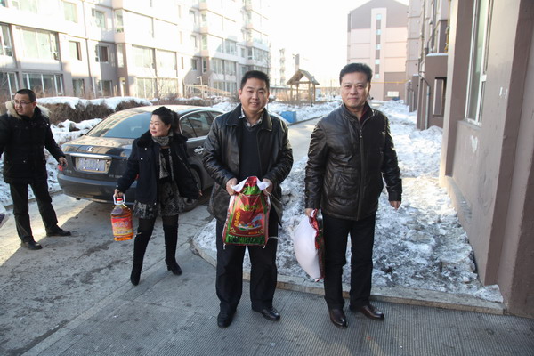 2014年1月9日江北乡和棋盘村领导慰问棋盘村村民