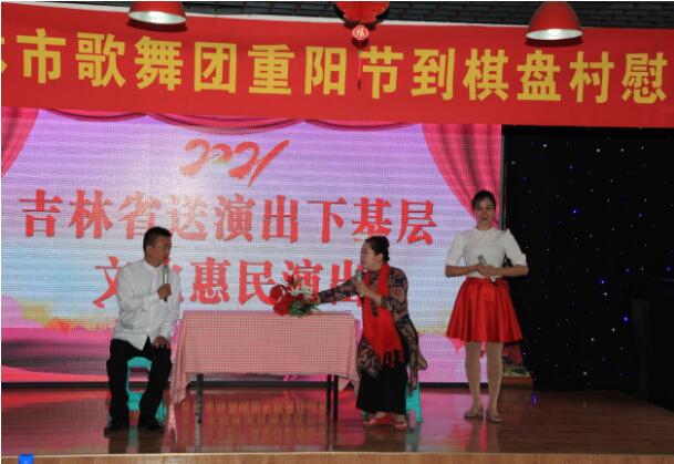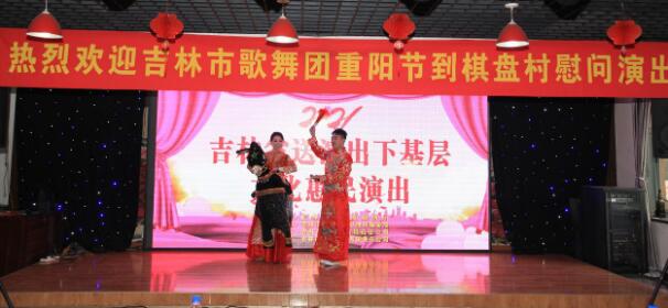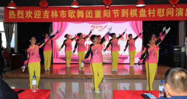 10月14日上午,棋盘村388名老前辈、老同志在棋盘集团生态餐厅欢聚一堂,共庆佳节。与以往不同的是,今年重阳节联欢会演出由吉林市歌舞团带来,他们为老人家们献上了一场别开生面的慰问演出,节目丰富多彩,包含歌舞、二人转、乐器和小品等多种形式的表演,压轴节目由棋盘村老年协会演出,精彩纷呈的文艺节目彰显了中华孝文化的传统美德。