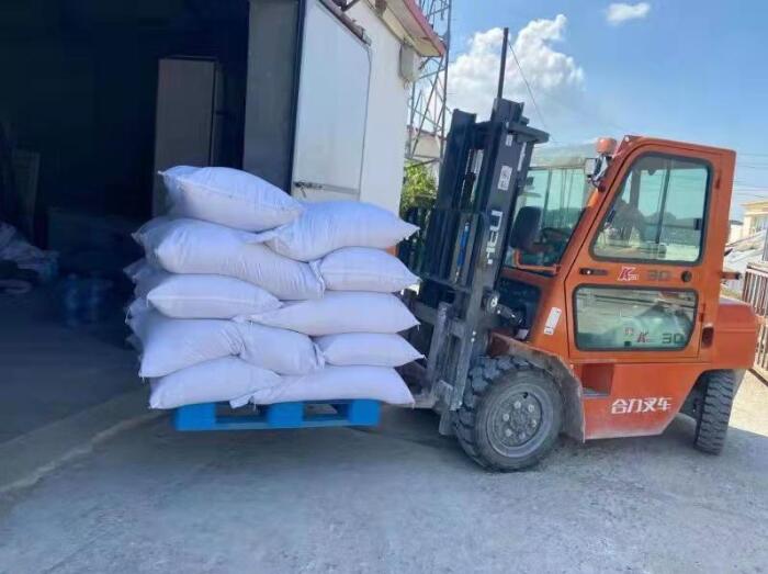 工人驾驶叉车将秸秆发酵饲料成品送至养殖场(8月31日摄)。新华社记者 徐子恒 摄