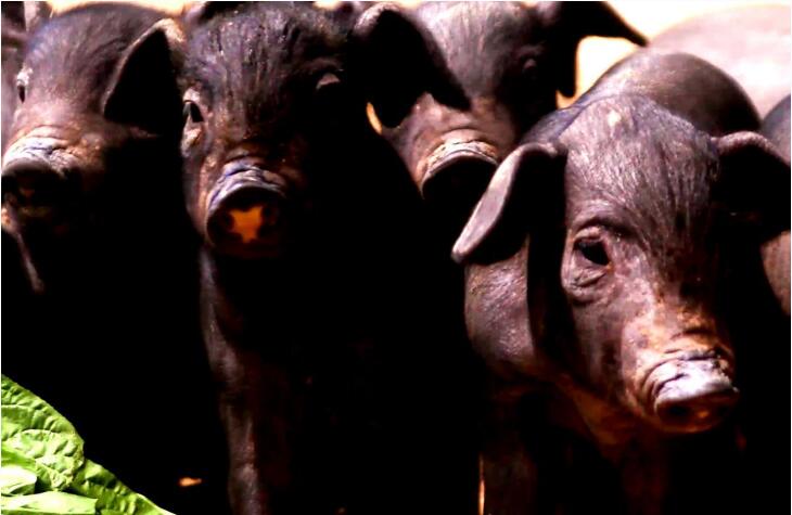 自然天性生长,猪肉回归本味。棋盘村雷猪平时睡在稻壳锯末软床上,在垫料中翻翻拱拱,和小伙伴追打玩闹,告别了限位栏狭小空间,告别了密集烦躁,集合了野猪抗逆性强、耐粗饲,梅山猪繁殖能力强,香猪肉质鲜美的优点。黑色雷猪绿色品质,肉质超越土笨猪风味,清水一涮,香气四溢,瞬间唤回老家感觉儿时味道。