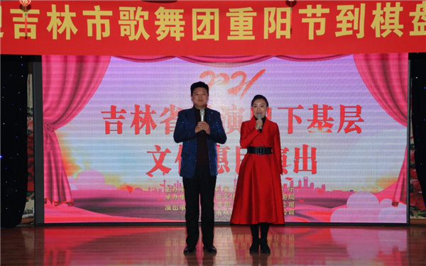 10月17日上午,棋盘村388名老前辈、老同志在棋盘集团生态餐厅欢聚一堂,共庆佳节。与以往不同的是,今年重阳节联欢会演出由吉林市歌舞团带来,他们为老人家们献上了一场别开生面的慰问演出,节目丰富多彩,包含歌舞、二人转、乐器和小品等多种形式的表演,压轴节目由棋盘村老年协会演出,精彩纷呈的文艺节目彰显了中华孝文化的传统美德。