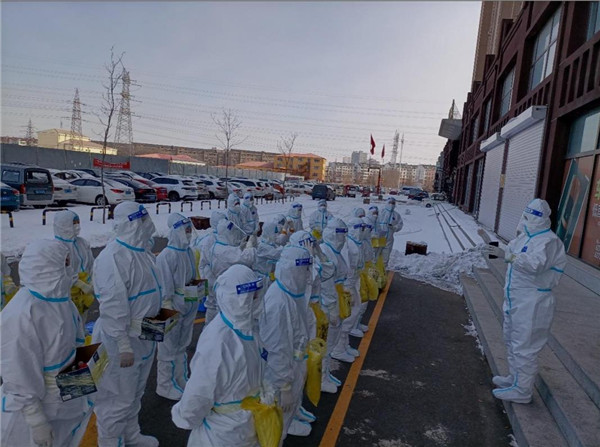 3月初,吉林市突如其来的疫情使整个城市陷入到紧张的状态之中。冯利伟如坐针毡:“疫情就是命令,防控就是责任。一名党员就要把自己做成一面旗帜,一个支部就要建成一座堡垒。面对严峻复杂的疫情防控形势,对棋盘村而言,三委班子要义不容辞地担当起来,这是责任更是使命!” 冯利伟迅速组织村三委班子召开紧急疫情防控会议。在会上,他坚定地说:“吉林是我们的家乡,大难来临,我们有义务有责任去守护她!在抗疫工作中,人员和物资是最为紧张的,我们应当马上储备物资,组织人员到一线去!” 随着疫情的发展,抗疫工作压力不断变大。在冯利伟的倡导下,棋盘村第一时间成立了由江北乡工作人员、江北乡医院专业医护人员、江北乡中心校教师志愿者、龙潭公安分局民警、棋盘村班子成员和党员志愿者共同组成的抗疫突击队,同时成立了临时党支部。 虽然是临时党支部,但党心不临时,作用不临时。临时党支部发挥了临时党组织的战斗堡垒作用,临时党支部的每一个成员都尽心尽力地做好手头分配的防疫任务。 临时党支部党员和居民志愿者到岗后马上进入了工作状态,穿戴防护设备,分兵把守各自点位,细致规范精准做好体温检测、秩序维护、流程讲解、扫码登记等工作。寒风之中,尽管汗水湿透了衣背,但他们依旧在努力保证信息无误的前提下提高工作效率,确保检测工作顺利进行。 在一线,冯利伟是最忙的——走访、协查、督导,常常连饭都吃不上一口热的。但,这个“大白”,走到哪里,便给哪里带去了战疫的决心和胜利的信心。 核酸检测送上门 规范防疫守牢一线